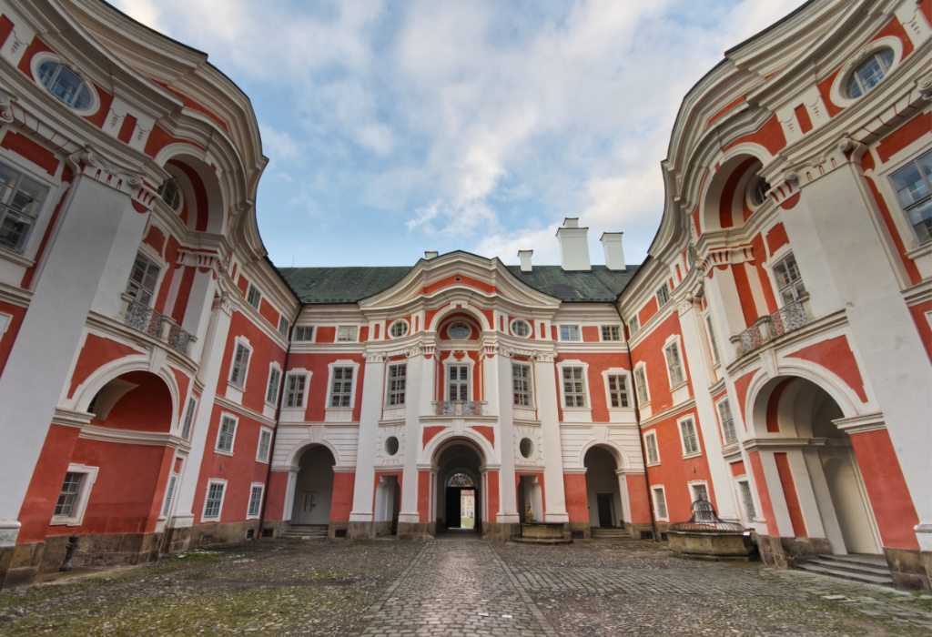 Die zweitägige Studienreise führt in eine der kulturhistorisch reichsten, zugleich landschaftlich markantesten Regionen Böhmens: nach Nordostböhmen, wo sich am Südrand der Sudeten mittelalterliche Kleinstädte, aristokratische Repräsentationsarchitektur und klösterliche Bautraditionen eindrucksvoll überlagern. Neben den Städten Gablonz an der Neiße/Jablonec nad Nisou, dessen Stadtbild und Regionalmuseum bis heute von der Blüte der Glas- und Bijouterieindustrie um 1900 geprägt ist, besuchen wir Hohenelbe/Vrchlabí, das Tor zum Riesengebirge mit seinem eindrucksvollen Schloss, dem Augustinerkloster und gut erhaltenen Bürgerhäusern sowie das Städtchen Arnau/Hostinné, das mit seinem Ring (Marktplatz) mit gotischen, zum Teil barockisierten Laubenhäusern ein nach wie vor weitgehend unversehrt gebliebenes Stadtbild aufweist.