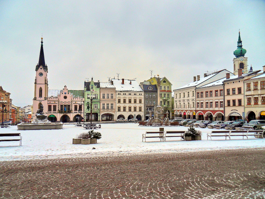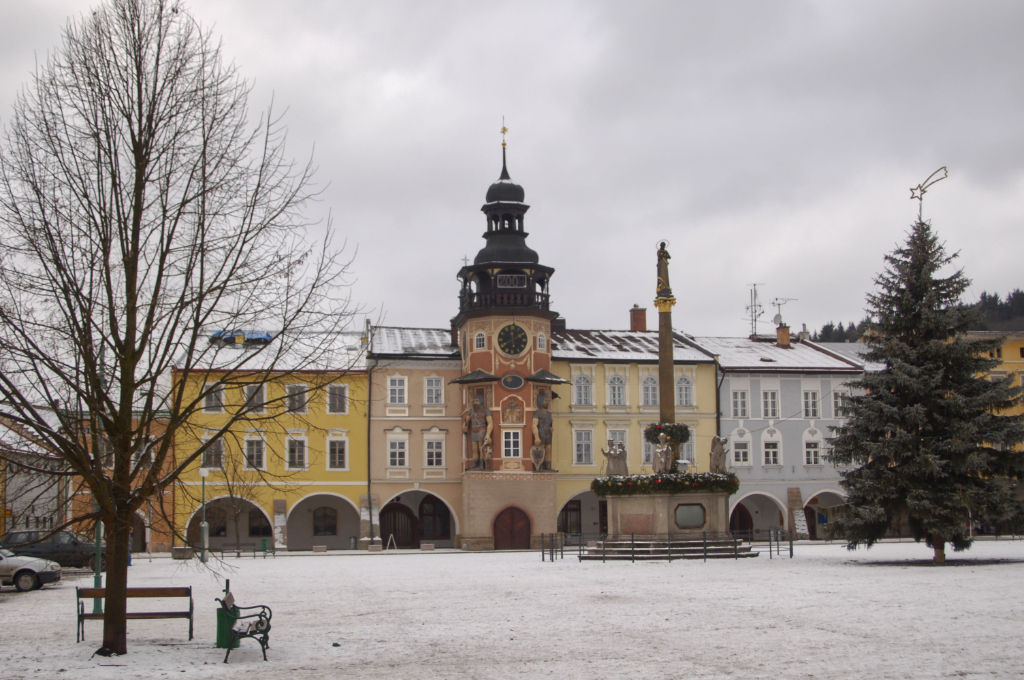 Trautenau/Trutnov | Winterliche Ansicht des des von Lauben gesäumten Marktplatzes