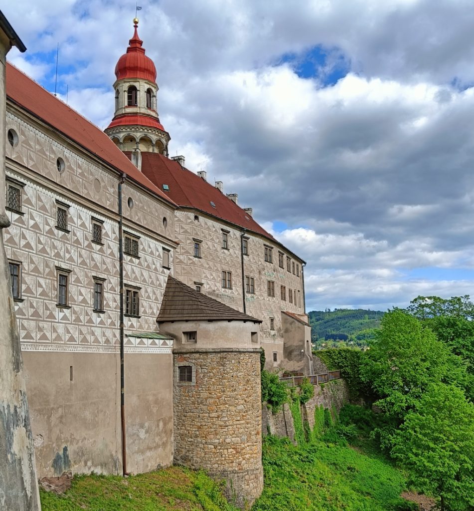 Nachod/Náchod | Hoch über der Stadt erhebt sich das Schloss, ein Renaissancebau, der sich seit dem Dreißigjährigen Krieg in den Händen der Adelsfamilien Piccolomini, Biron von Kurland und zuletzt den Fürsten von Schaumburg-Lippe gehörte.