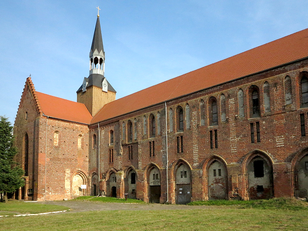 Kolbatz/Kołbacz | Der Kirchenbau des Zisterzienserklosters – der frühesten Ordensniederlassung östlich der Oder – wurde nach der Reformation stark dezimiert. Nachdem die Seitenschiffe der Basilika beseitigt worden waren, wurde das Langhaus zu einem Getreidespeicher der kurfürstlichen Domäne adaptiert, während das Querhaus und der Chor der Gemeinde als Gotteshaus verblieb. Der Dachreiter – ursprünglich nach einem Entwurf Friedrich August Stülers errichtet – wurde nach 2010 originalgetreu rekonstruiert.